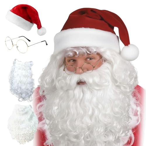 ✅【ボリューム感あふれるサンタのひげ&ウィッグ】 たっぷり毛量のウィッグ(約120g)とひげ(約60g)で、、なめらかな光沢と上品な仕上がりにこだわりました。ウィッグとひげは、クルクルとした毛質と豊かな毛量で存在感抜群。さらに、肌に触れてもチクチクしにくいので、長時間の着用も快適です。ひげは後頭部に回すゴム紐付きで、動いたり会話をしても外れにくい設計。帽子・ウィッグ・ひげ・眼鏡・手袋を装着すれば、目元だけが出る本格仕様。サンタ衣装と合わせるだけで完璧なコスプレが完成します。フリーサイズで男女問わず着用可能です。
